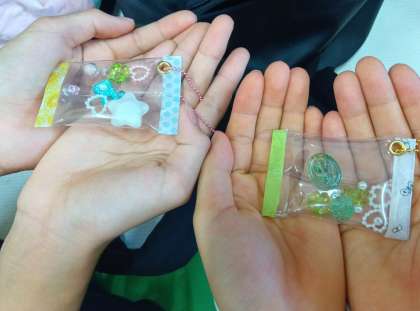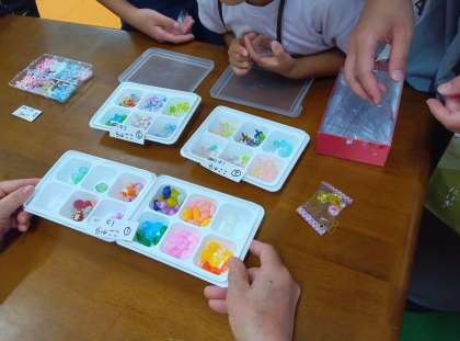 キャンディバッグが作れます。好きなパーツを選んで透明の小さいバッグに入れます。