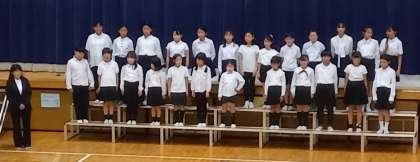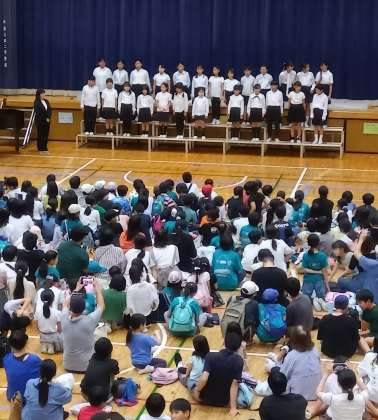 様々な催し物で大活躍の「明正小合唱団」の登場です。お友達が出演していることもあり、観客から大きな歓声があがりました。超満員の中、すてきな歌声が響いています。