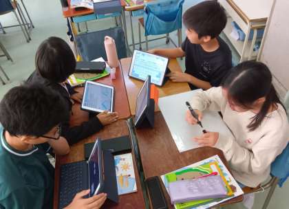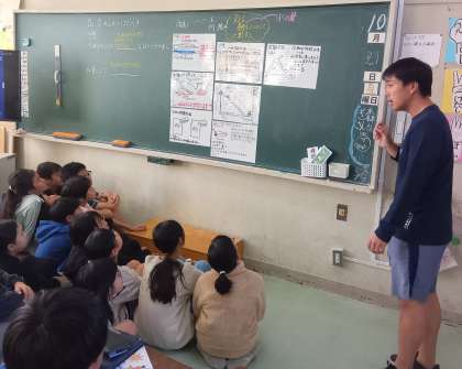 5年生の理科は「流れる水のはたらきと土地の変化」について学んでいます。「流れる水にはどのようなはたらきがあり、量によってちがいがあるのだろうか」という問いに対して、仮説を基に解決方法を考えました。解決方法は砂場やペットボトルを活用した楽しそうな方法が多く出ました。