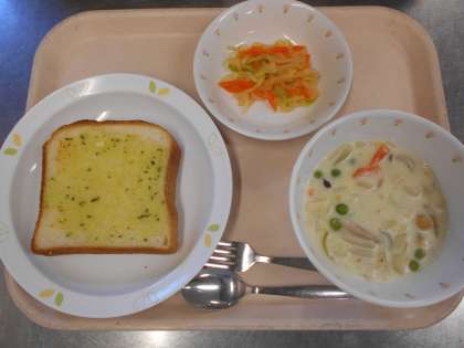 ガーリックトースト 豆入りクリームシチュー イタリアンサラダ