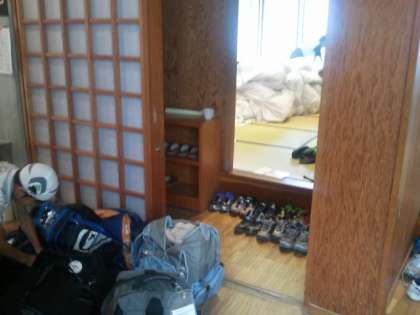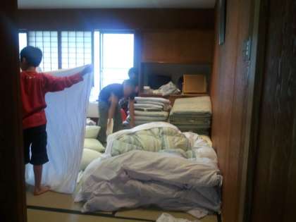 ビレッジでのともお別れです。ふとんを片付け、大きな荷物を出して、最後は部屋の掃除です。