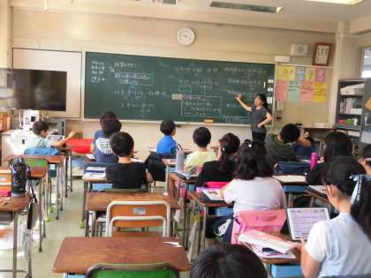 4年生の算数では「計算のきまり」について学習しています。(1)基本的には左から順にする (2)( )がある式は( )の中を先に計算する (3) たし算ひき算とかけ算わり算がまじっているときは、かけ算わり算を先に計算する ことを学びました。きまりを守って計算しないと、答えが違ってくることも理解することができました。真剣に先生の説明を聞き、頭の中を整理しながらノートにまとめ、問題を解く姿が見られました。