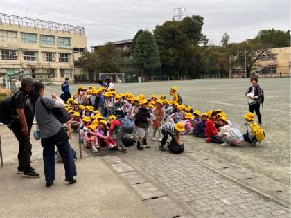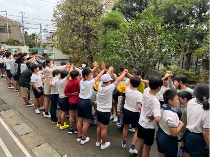1年生が校外学習に出発しました。みんなの願いが通じて雨もやみました。6年生がアーチをつくって見送ってくれました。「行ってきます!」と元気にあいさつしました。