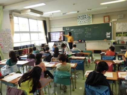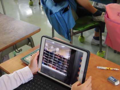 2年生の算数ではかけ算の学習が始まりました。今日は、学校の中でかけ算の式で表すことができる場面を探しました。下駄箱、掲示物、ボールラックなど、教室の中だけではなく、廊下や体育館なども探して、iPadを活用して写真を撮りました。教室に戻ってからは、写真を見て、実際にかけ算の式に表しました。学校生活の中でもたくさんの場面でかけ算を使って表すことができました。