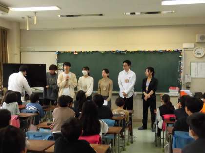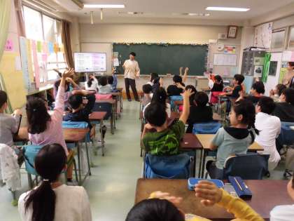 4年生が、講師の先生をお迎えして「環境出前授業」を行いました。世田谷区の環境サポーターの大学生が講師となって、地球温暖化やエネルギーや食品ロスといったテーマで気候危機について講義をしてくれました。このままだと50年後の地球がどうなっているのかを学び、とてもびっくりしました。とても興味深い内容で、たくさん手をあげて発表したり、クイズに参加するなど、積極的に参加する様子が見られました。地球を守るために、自分自身ができることを考え、発表することを通して、ひとりひとりがエコ活動を実践するきっかけになりました。