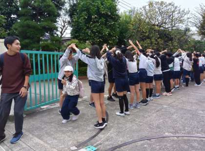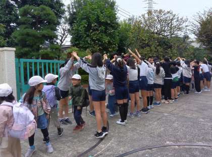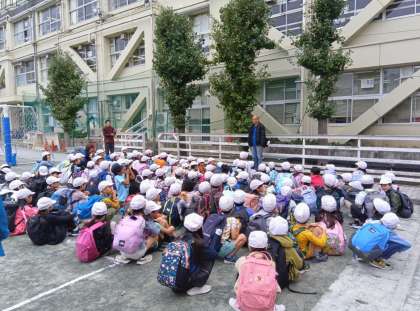 校長先生から、安全にみんなが笑顔で戻ってくるようにとのお話がありました。お休みもなく、全員で行けることに拍手がわき起こっていました。
