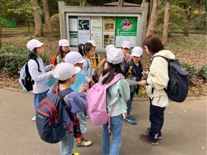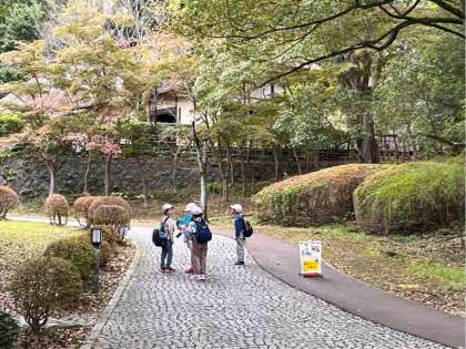 オリエンテーリングがスタートです。班長さんを中心にグループで行動しています。スタートしてすぐに地図を見て立ち止まるグループもあります。