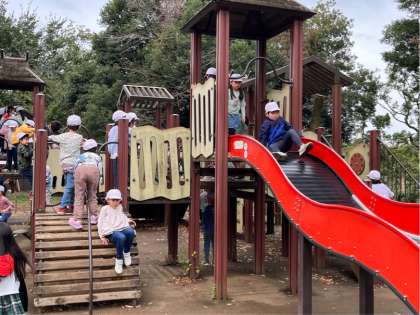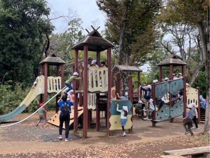 ゴールした班から広場で遊んでいます。大きな遊具があって楽しそうです。