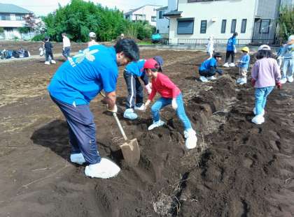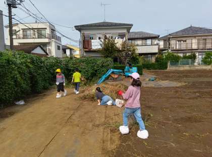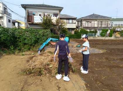 里芋掘りが終わり、草や葉っぱを1箇所に集めました。