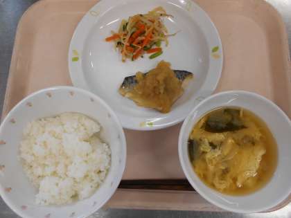 ごはん さばのおろしソース おひたし ときたまごのみそ汁 牛乳