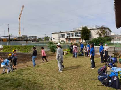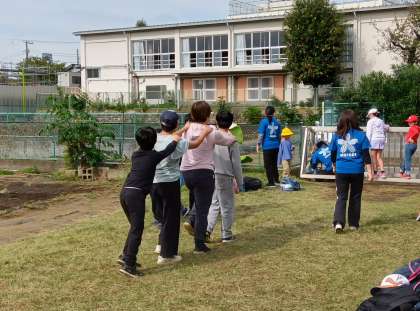 おべんとうを食べ終わり、少し芝生で遊んでいます。