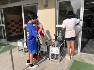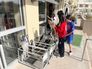 清掃の時間に、6年生が進んで傘立てを整理してくれました。傘をベルトで縛って、きれいに並べてくれました。整理されていてとても気持ちがいいです。明正小をよりよくしようと、6年生一人一人が考え、行動してくれています。うれしいとともに、頼もしいです。