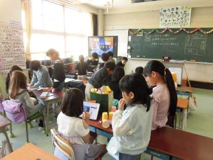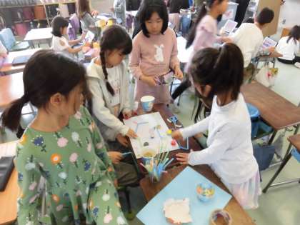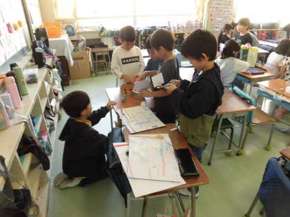 2年生のクラスで、1年生との交流会の準備で、1年生が楽しんでくれるおもちゃやゲームを作りました。磁石を使った迷路や、紙コップを使ったロケットなど、楽しそうなおもちゃ作りが着々と進んでいました。1年生が楽しんでもらえるようにカラフルにしたり、グループで相談しながら、様々な工夫をしている様子が見られました。