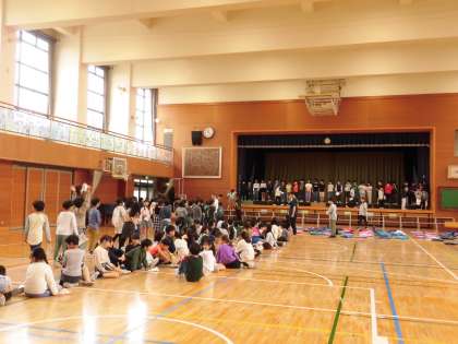 学習発表会に向けて、今日から学年練習が始まりました。体育館で自分の立ち位置を覚えたり、歌の練習をしたり、一気に学習発表会への気持ちが高まってきているようでした。