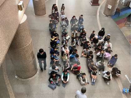 3、5組が教育センターに到着しました。準備を済ませ、プラネタリウムに入りました。