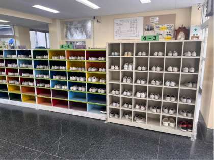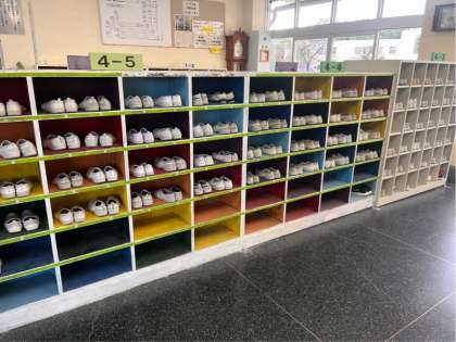 4年生の靴箱には、上履きがきれいに入れてありました。見ていて気持ちよく、4年生の気持ちが落ち着いているのだと感じました。上履きがそろっていると、履き替えた後の外履きもそろっています。一人一人が少しずつ気をつけてられるといいですね。
