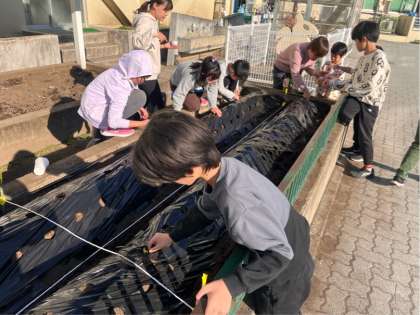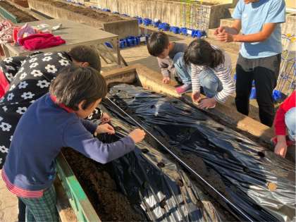 ひまわり学級の皆さんが学校の花壇で冬野菜を育てます。ほうれん草は種をまき、玉ねぎは苗を植えました。大きく育つといいですね。