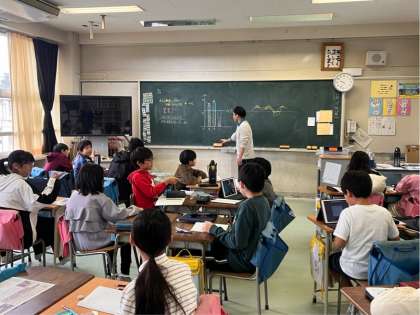 5年生は算数で「平均」を学習しています。生活の中に、平均は使われることがありますが、なんとなく分かっているようで、分からないこともあったようです。学習が進むと、子どもから「あ!そういうことか!」という声が聞こえました。