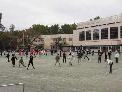 お天気の良い休み時間には、校庭などで思いっきり遊んでいます。ドッジボールやおにごっこ、大なわとびなどたくさんの友だちとワイワイ楽しんでいます。少し肌寒くなりましたが、元気いっぱい、汗をかきながら遊び、校庭には大きな声や笑い声が響いています。