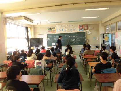5年生の総合では「共生社会の実現に向けて」の学習が進んでいます。共生社会とは何かを考え、共生社会の実現に向けて自分たちに何ができるかを考えていきます。今日は、「高齢者」「障がい者」「妊婦」など、さまざまな状況にある人々をテーマにして、困っていることはどんなことなのかなどについて、調べることにしました。調べてみたいテーマごとにグループに分かれて、どのように調べるか計画をたてました。