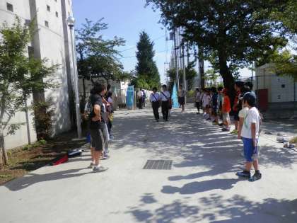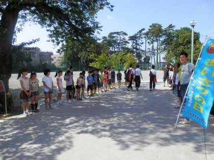 砧小学校、山野小学校の代表委員会の皆さんと一緒に計画委員会の子どもたちが朝から砧中学校へあいさつ活動へ出かけました。3校の子どもたちが中学校の正門に立ち投稿してくる中学生にあいさつをして迎えました。その後、生徒朝会にでて、中学生が小学校にあいさつ活動をしてくれたお礼を言いました。たくさんの拍手をもらって、とてもうれしかったですね。