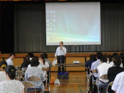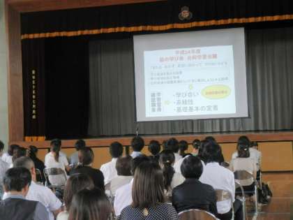 砧中学校で、砧中・砧小・山野小・明正小の4校の教員が一堂に会し、合同の学習確認会議と研修会を実施しました。