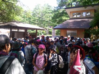 戦場が原のハイキングのゴール地点赤沼に、全員無事到着しました。