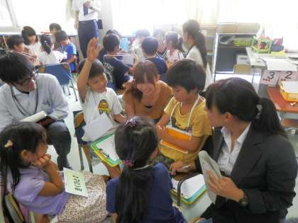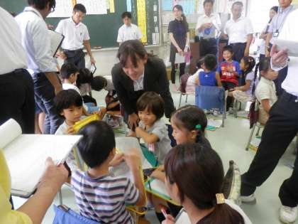 1年3組で研究授業を行いました。国語の勉強の時間です。担任の市村先生の話をよく聞き、しっかりと学習ができました。