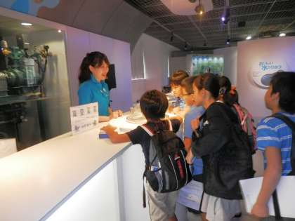 午前中は、水の科学館の見学です。当たり前のように身の回りにある、水について学ぶことができました。昼食はこの科学館の前にある、広場で食べることができました。