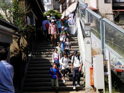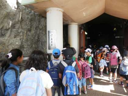 4年生は遠足江の島へ行きました。一番奥の岩屋まで行きました。小さな島ですが、歩き崖がありました。