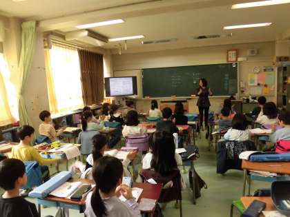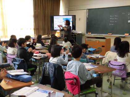 2年生の音楽では「リズムを重ねて楽しもう」の学習をしています。2拍子・3拍子の拍子を感じ取りながら、手拍子でリズム打ちをしました。グループに分かれて、グループごとに異なるリズムを打ちながら、曲に合わせて2つのリズムを重ねました。違うリズムにつられてしまわないように、集中してリズムをとることができました。4分音符や4分休符の学習もして、楽譜の音符に親しむことができました。