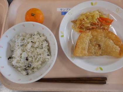 わかめごはん ジャンボぎょうざ 春雨サラダ みかん 牛乳