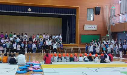 1年生と保育園との交流がありました。はあと保育園と喜多見保育園のみんなが1年生の学習発表会の発表を観にきてくれました。1年生は、上級生としてとても、張り切って発表していました。明日の本番も楽しみにしてください。