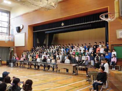 3年生は、リコーダーの演奏、3年生が作った詩の群読、そして「アイノカタチ」の合奏と合唱の発表でした。3年生になってから始まったリコーダーの合奏はとてもきれいで優しい音色でした。詩の群読からの「アイノカタチ」の合奏と合唱には、心を動かすパワフルな力があったようです。歌詞の意味もしっかりと理解して、表現する姿に一人一人の「カタチ」を感じることができました。