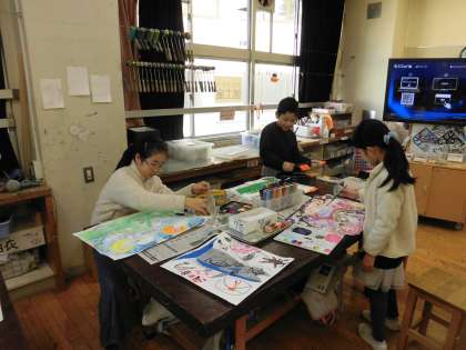 4年生が図工で取り組んでいる「へんてこ山の大冒険」の制作も、完成間近となりました。クレパスや絵の具の質感を出して、細かいところまで丁寧に描き、完成を目指し、仕上げに入っています。誰も思いつかないような自分だけの「へんてこ山」を、想像を含まらせて描くことができました。とても楽しくカラフルで、見ている人の想像をかきたてる作品が出来上がりました。