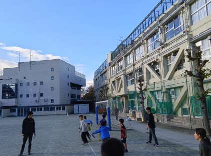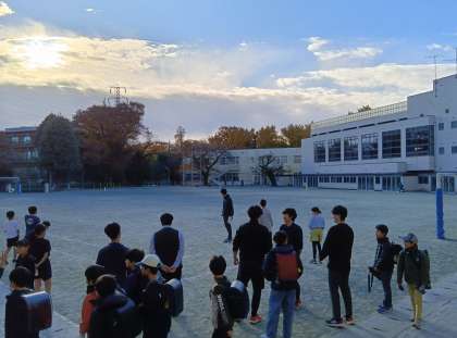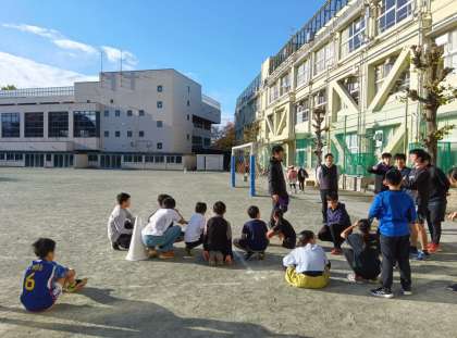5、6年生の駅伝選手が、駅伝に向けて練習をしました。たすきを渡す、受け取る練習をしました。教員チームも一緒に走りました。