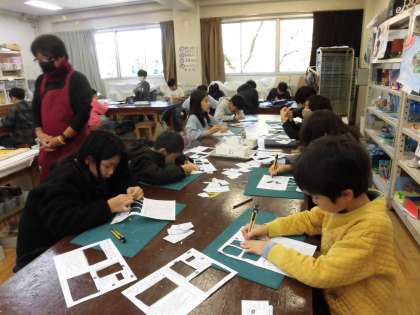 4年生の図工では、カッターナイフを使った制作活動が始まります。今日は、はさみとカッターナイフの違いや特徴、カッターナイフの使い方について学習しました。えんぴつ持ちやにぎり持ちなどの持ち方や、カッターナイフの動かし方を学び、裏紙を活用して、練習をしました。大きくカットしたり、小さく細くカットしたり、丸くカットしたり、細かい部分まで集中して切り抜いていました。安全なカッターナイフの使い方をしっかりと身につけて、作品の制作に入ります。