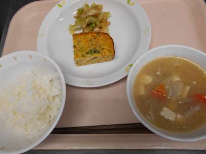 ごはん 千草焼き きゃべつとちくわのおかか和え 豚汁 牛乳