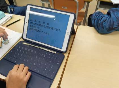 学習の終わりには、先生からタブレットに練習問題が送られ、問題に取り組みました。