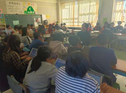 小学生と年齢が近いということもあり、すぐに子どもたちと打ち解け、子どもたちからたくさんの質問が出ていました。