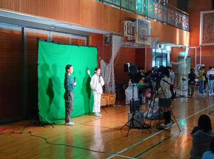 ニュースキャスターになりきって原稿を読んだり、カメラマンになりきって撮影したりする放送体験をしました。