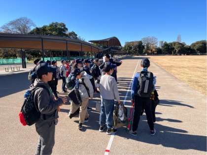 夢の島公園に着きました。東京オリンピックでアーチェリーの会場になった所です。白いラインから矢を放ったそうです。