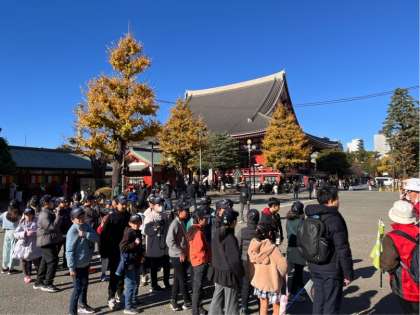 浅草寺に着きました。グループに分かれて、ボランティアガイドの方々に案内をしてもらいます。