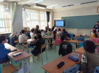 子どもたちは、教材の動画を見て、命を大切にすることや困ったらSOSを出すことを学びました。誰かが必ず助けてくれるからSOSを出そうという先生の体験談も聞きました。
