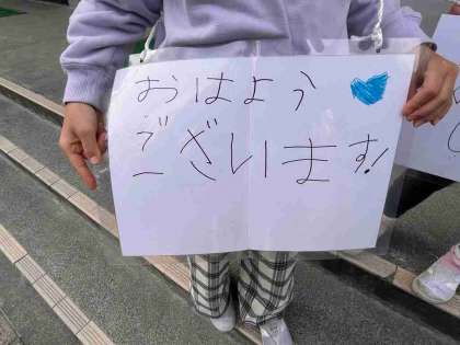 風の冷たい朝でした。手袋をして登校する子が増えたようです。転ぶと危ないので、ポケットには手を入れず、手袋をするようにしてください。1年生の「あいさつ隊」の皆さんが寒さにも負けず、明るく挨拶をしてくれています。ありがとう! 元気が出ます。