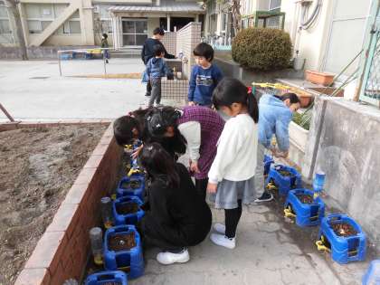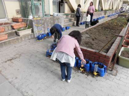 1年生 チューリップの水やり