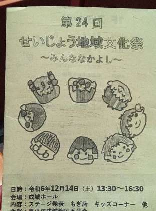成城ホールにて第24回せいじょう地域文化祭がありました。もぎ店やイベントコーナーなどで賑わっていました。
