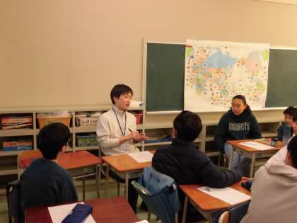 国士舘大学の留学生をお迎えした特別授業では、2グループにわかれて、質問タイムも設けられました。日本の大学院で勉強している内容についてさらに深く質問したり、日本の食べ物のこと、日本の良いところ、中国と日本の気候の違いや文化の違いなどについても積極的にたくさんの質問が出て時間が足りないほどでした。どの質問にも丁寧に答えていただき、とても有意義な時間となり、とても楽しく交流できました。