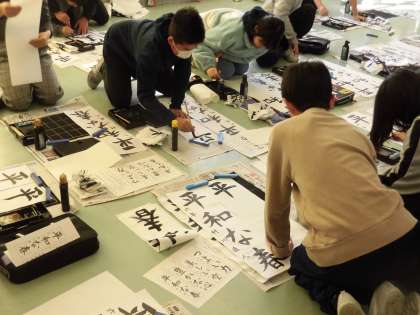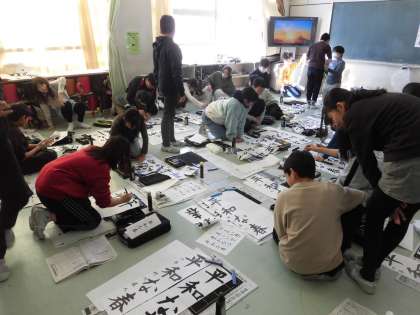 6年生が書写の時間に書き初めの練習をしました。課題の「平和な春」を、ゆっくりと筆を動かしながら、一画一画を丁寧に書く様子が見られました。教室の空気も静寂に包まれ、心を落ち着かせて練習することができたようです。真剣に取り組む姿、その集中力はさすが最高学年と感じます。