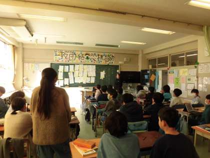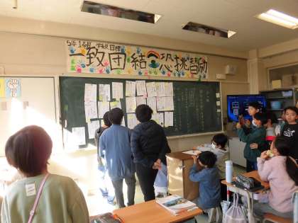 5年生の国語で、「冬の朝」を題材とした俳句を詠み、句会が開かれました。自分が詠んだ句を画用紙に書き、だれが書いたものかわからなように黒板に掲示しました。友だちの俳句をみて、いいところを見つけて、いいところカードを書いて、投票しました。一番カードが多く投票された人が俳句王に選ばれました。どの俳句も、自分が感じたことや想像したことを素直に表現され、冬の朝の様子が目に浮かぶようなものばかりです。